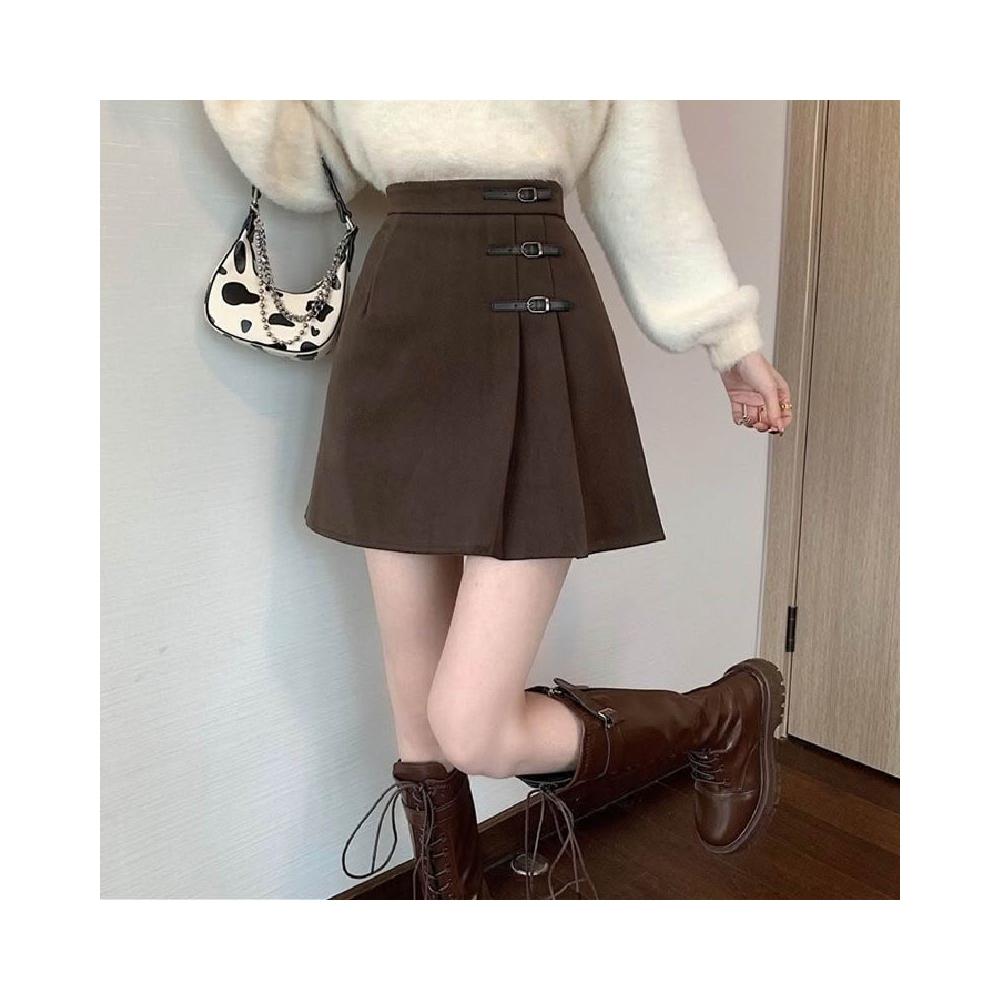 半身裙長裙A字裙加厚毛呢半身裙大碼短裙女秋冬新款胖mm高腰顯瘦遮胯百褶裙休閒短裙洋裝裙子秋冬季長袖小眾設計感連衣裙洋裝裙