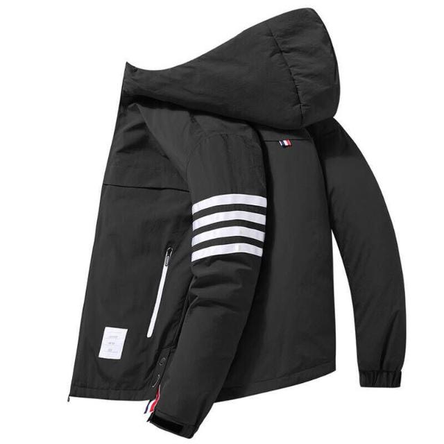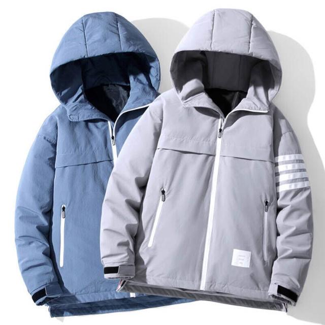 羽絨外套男冬羽絨服加厚三條杠羽絨衣情侶輕薄保暖連帽羽絨上衣面包服寬松防風輕薄保暖短款羽絨拉鏈加厚夾克冬大尺碼羽絨衣羽絨服
