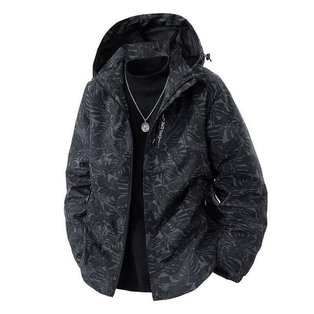 沖鋒衣迷彩楓葉沖鋒衣情侶款春秋戶外運動登山服夾克開衫單衣休閑防風外套衝鋒衣男女同款防風防水登山外套衝鋒衣情侶同款保暖外套
