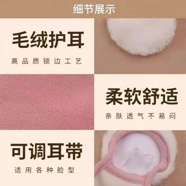 口罩耳罩加絨女秋冬保暖3D立體護耳二合一戶外騎行防風防寒面罩男防風防寒騎行口罩 秋冬防風透氣保暖口罩戶外禦寒口面罩