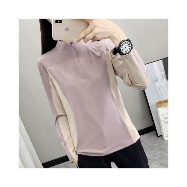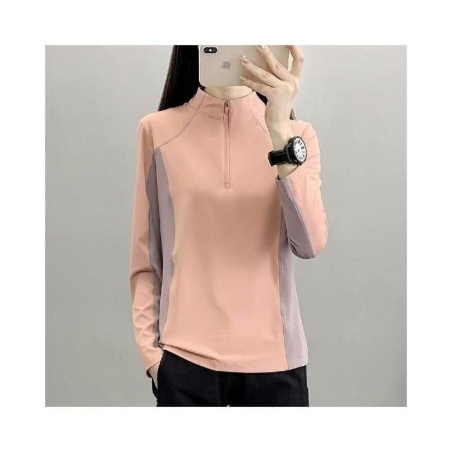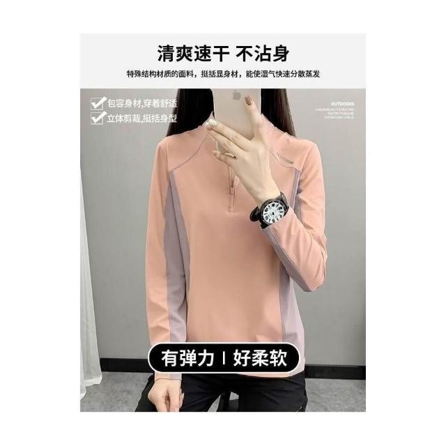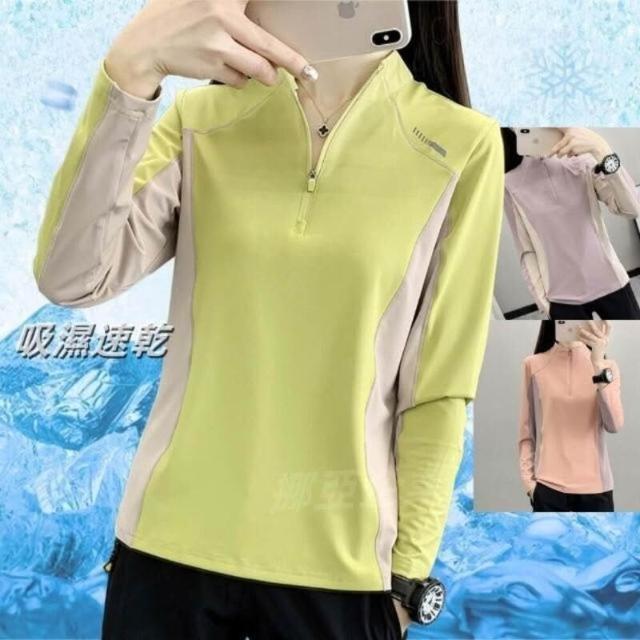 吸濕排汗衣長袖涼感衣女速乾薄長袖上衣健身瑜伽上衣排汗上衣登山慢跑上衣透氣上衣遮陽防曬運動上衣寬鬆休閒長袖立領半拉鏈長袖