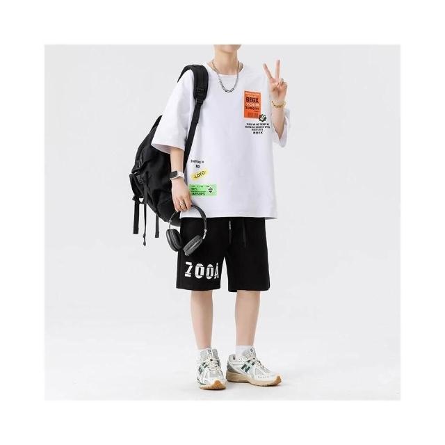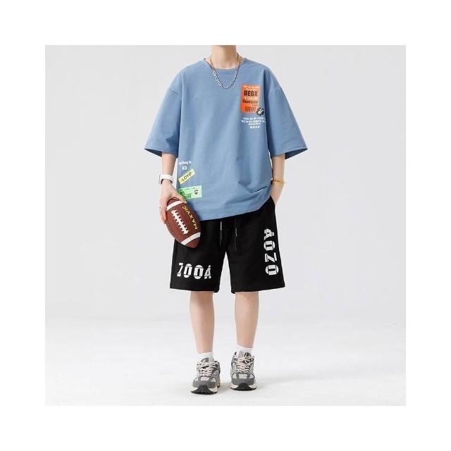 T恤男夏季新款時尚休閒設計青少年短袖籃球套裝冰感百搭男士運動休閒套裝夏天舒適透氣寬鬆清涼舒適吸濕排汗上衣運動短褲男裝寬褲