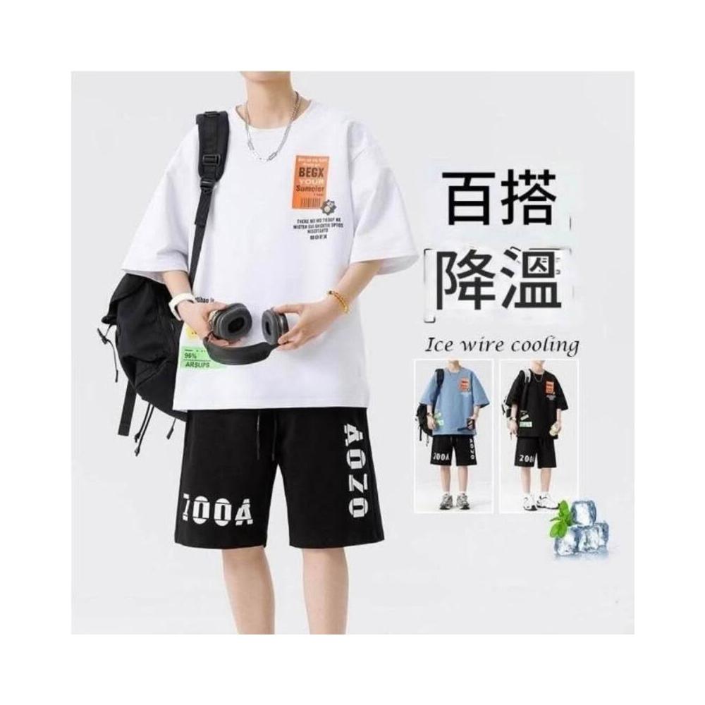 T恤男夏季新款時尚休閒設計青少年短袖籃球套裝冰感百搭男士運動休閒套裝夏天舒適透氣寬鬆清涼舒適吸濕排汗上衣運動短褲男裝寬褲