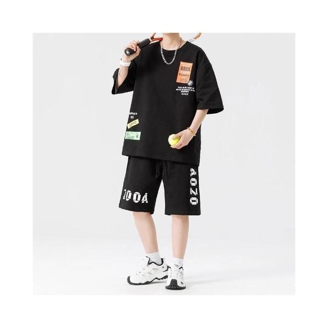 T恤男夏季新款時尚休閒設計青少年短袖籃球套裝冰感百搭男士運動休閒套裝夏天舒適透氣寬鬆清涼舒適吸濕排汗上衣運動短褲男裝寬褲