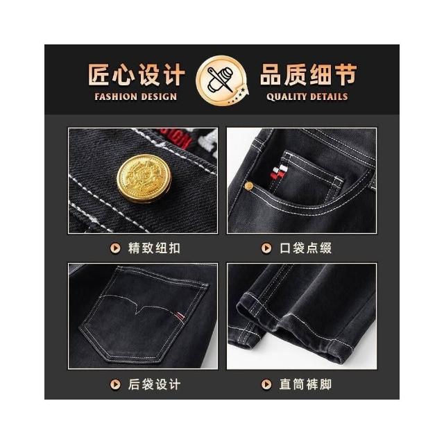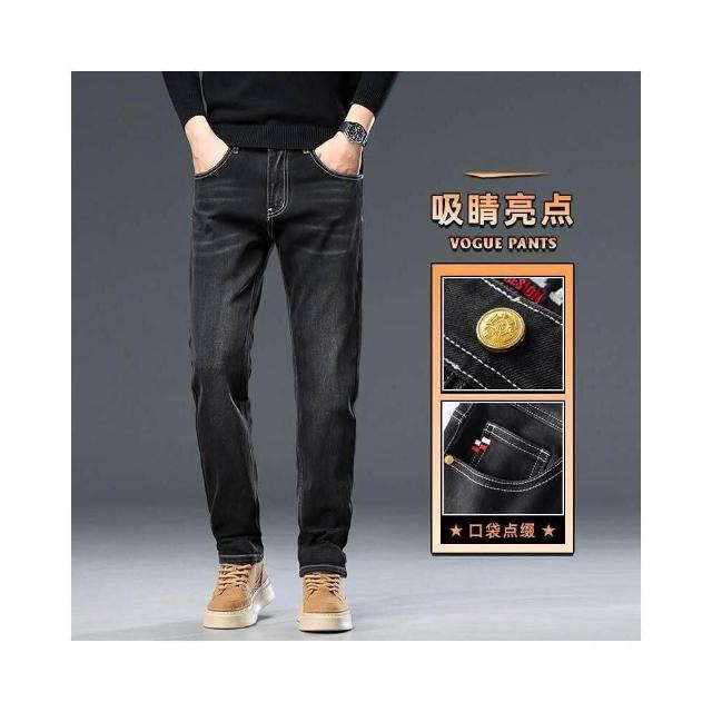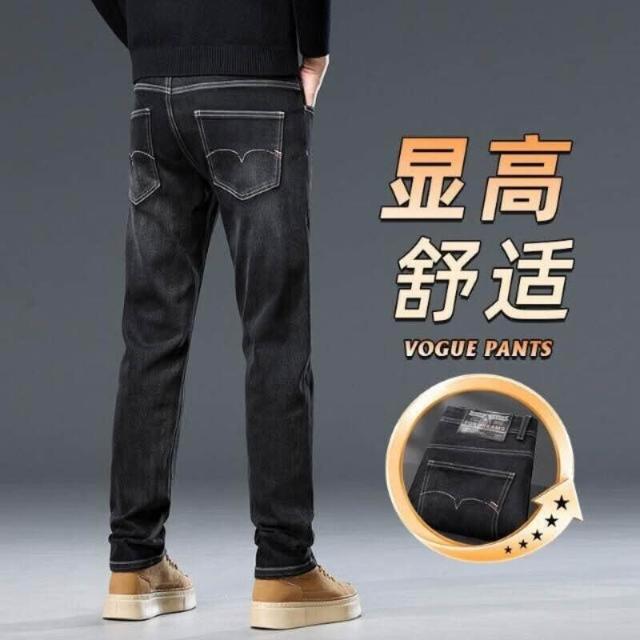 牛仔褲男商務秋冬修身彈力小腳長褲通勤厚磅保暖低腰直筒耐磨工作做舊垂感休閒水洗紳士中年牛仔工裝褲男牛仔大尺碼加厚春秋長褲男