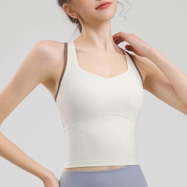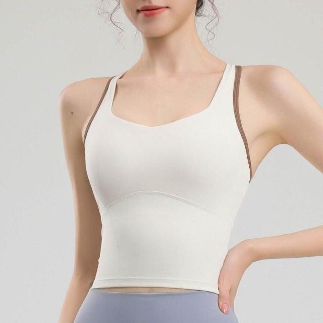 背心運動內衣女防震高強度胸墊一體式中長款外穿健身瑜伽背心女內著工字美背上衣跑步文胸普拉提訓練吊帶吸濕排汗輕薄透氣修身短袖