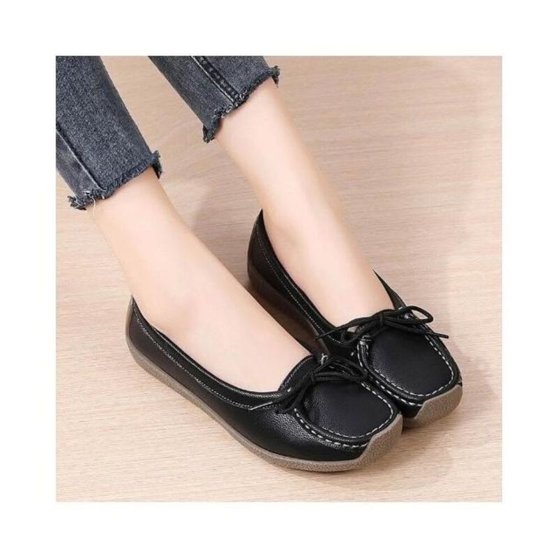 樂福鞋女復古韓國寬楦圓頭休閑鞋輕量平底舒適時尚百搭真皮涼鞋防水防滑厚底大尺碼豆豆鞋一脚蹬上班通勤媽媽瑪麗珍娃娃鞋黑色女鞋