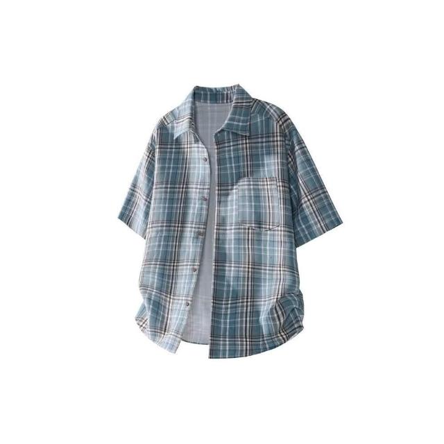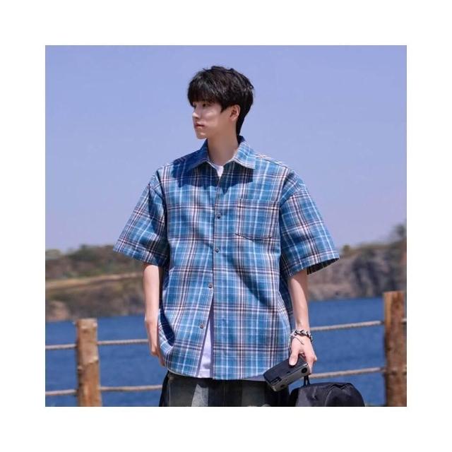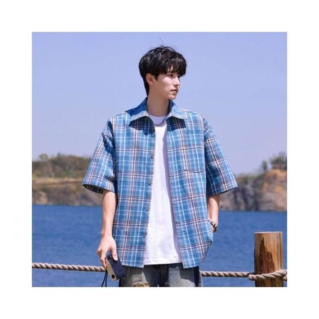 夏季新款 大尺寸格紋 短袖襯衫 輕薄 透氣 薄外套 休閒 工裝外套寸衫 百搭 五分袖 襯衣男 時尚休閒寬鬆外套
