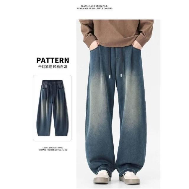 彎刀褲 牛仔褲男款大尺碼美式復古牛仔彎刀褲男長褲戶外通勤休閒褲商務工作褲寬鬆直筒男生褲子百搭闊腿柔軟舒適春秋彈力男裝下著新年衣服