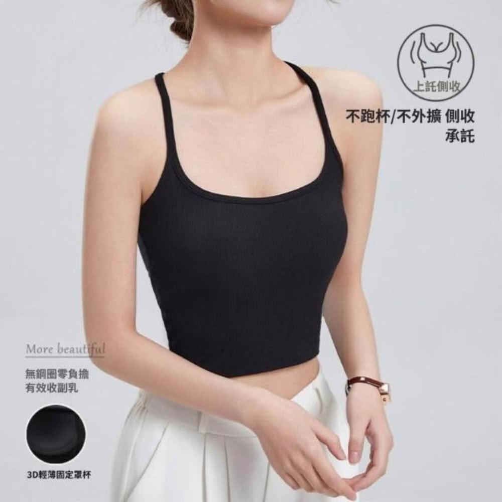 運動小吊帶背心女外穿夏內搭帶胸墊美背文胸一體打底瑜伽上衣背心吊帶健身跑步運動服瑜伽服健身修身無袖T恤運動內衣內搭文胸瑜伽背心美背女士
