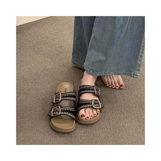涼鞋女夏季寬楦舒適運動拖鞋增高防滑耐磨厚底涼鞋韓國黑色輕量透氣涼拖鞋一腳蹬懶人鞋娃娃鞋厚底鞋沙灘鞋女涼鞋防臭涼鞋編織涼鞋