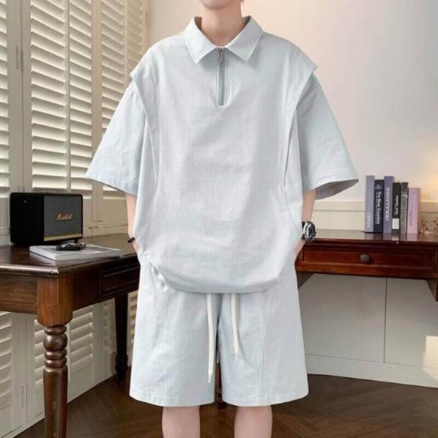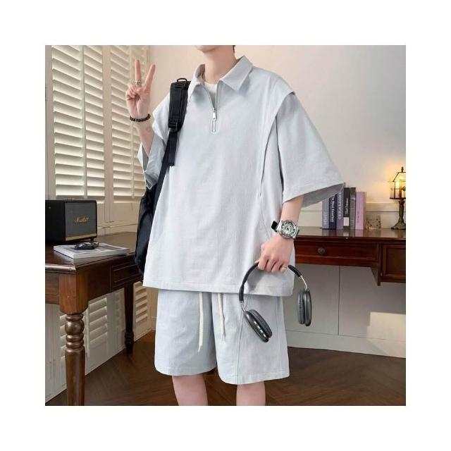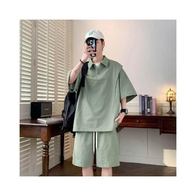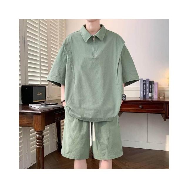 短褲男寬鬆透氣涼感速乾直筒夏季百搭休閒五分褲夏季新款男短袖POLO短袖T恤上衣寬松痞帥上衣短褲套裝冰絲短褲休閒短褲五分短褲速乾涼感透氣海邊度假沙灘褲