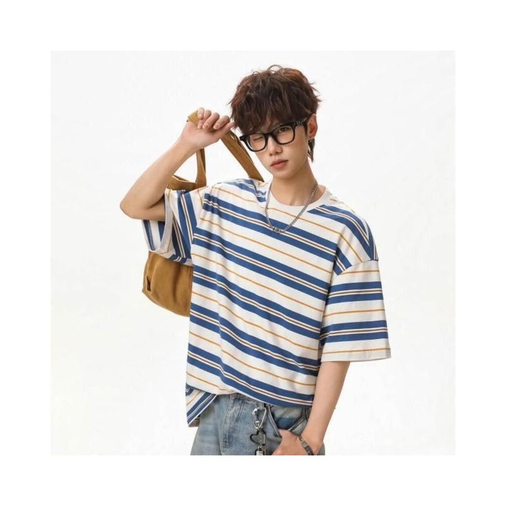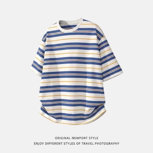 涼感衣短袖T恤男韓版寬鬆純棉透氣涼感夏季休閒百搭圓領上衣撞色條紋短袖T恤男夏季款美式復古情侶寬松百搭休閑半袖體恤POLO衫情侶上衣男女同款吸濕排汗親膚T恤
