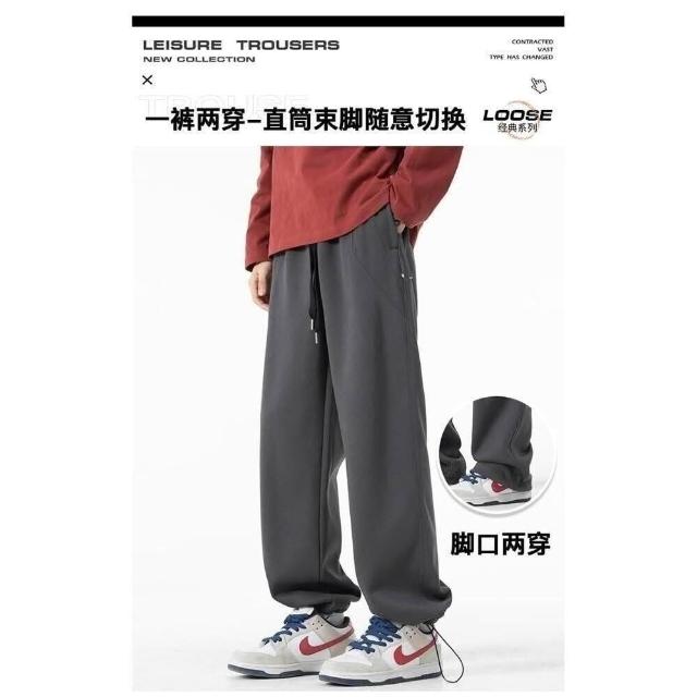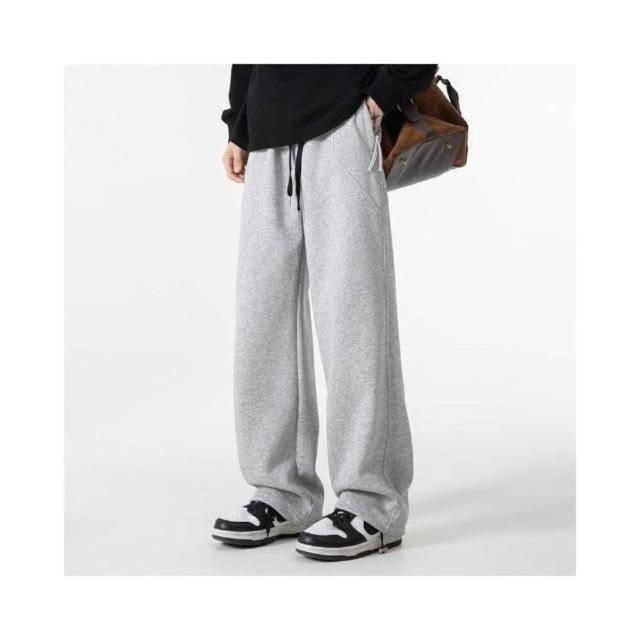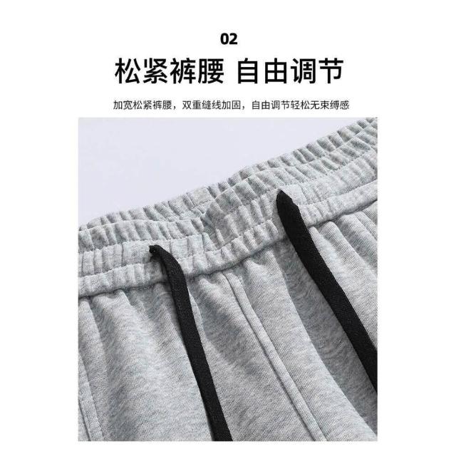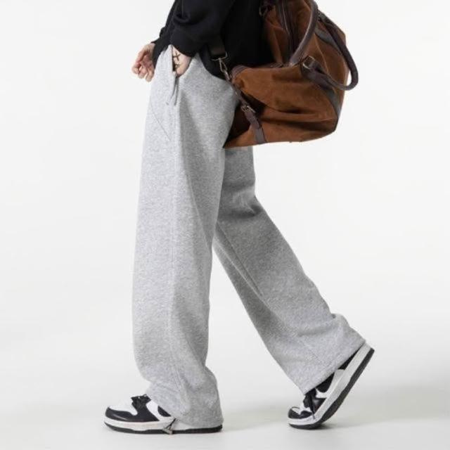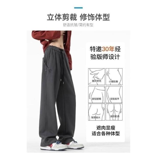 運動長褲男秋冬季運動寬褲棉褲美式休閒褲直筒縮腳褲潮流百搭闊腿針織褲寬鬆長褲男女同款男生遮肉顯瘦舒適透氣鬆緊帶灰色褲子