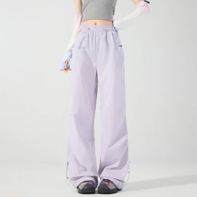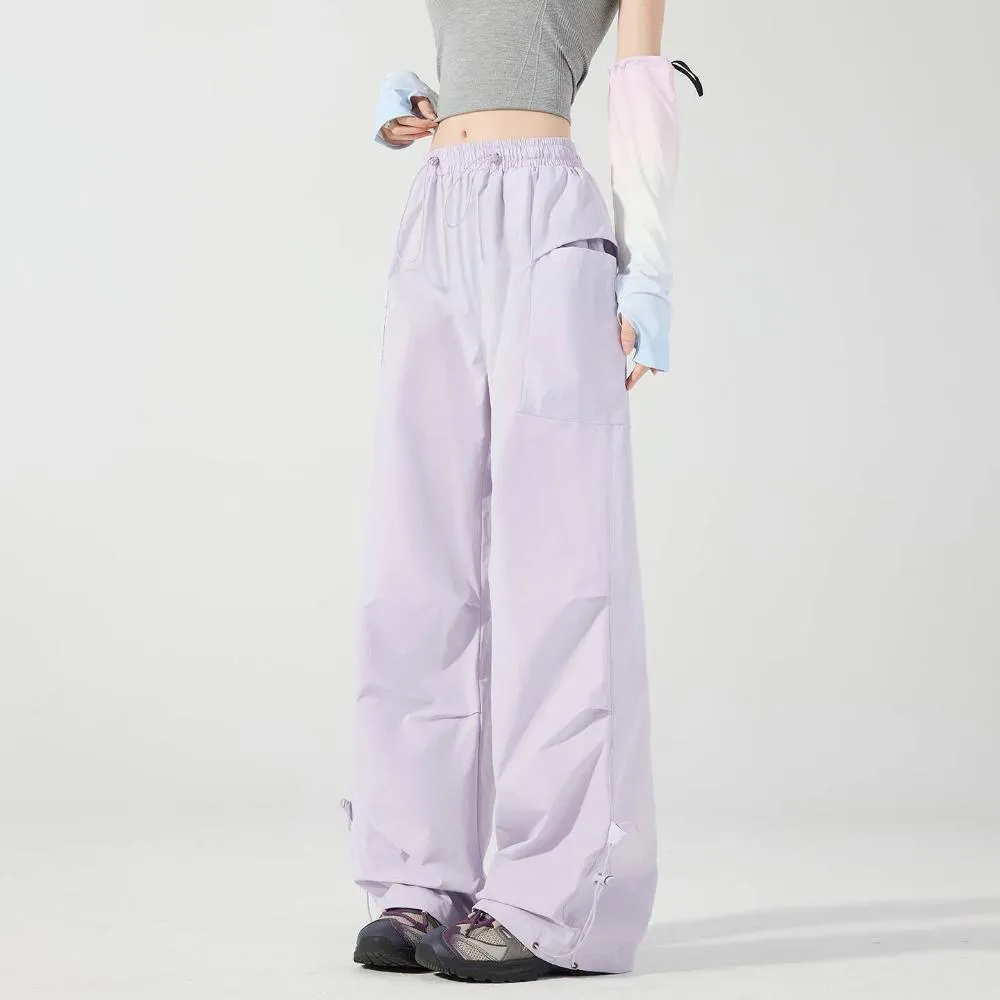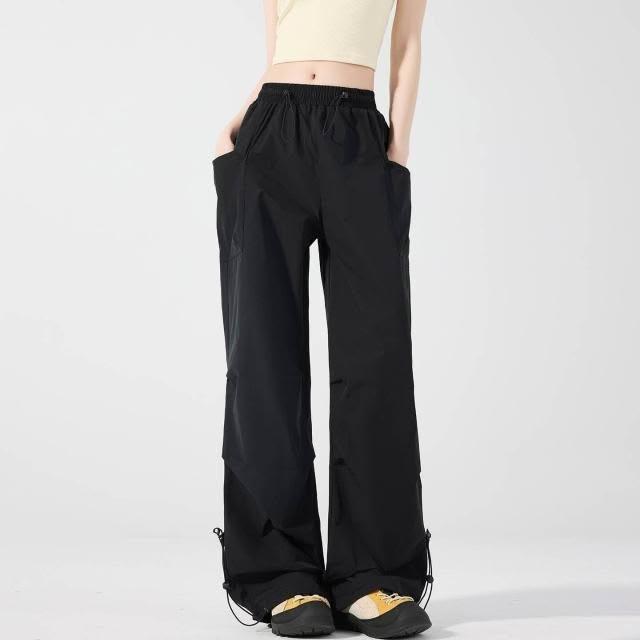台灣現貨24小時發出 休閒褲男女款夏季冰絲薄款透氣防風加大尺碼寬松徒步登山彎刀拖地褲情侶款青春流行潮流直筒運動長褲舒適多功能高品質休閒工裝彎刀褲機能傘兵戶外登山速乾冰感親膚防曬褲下著女褲