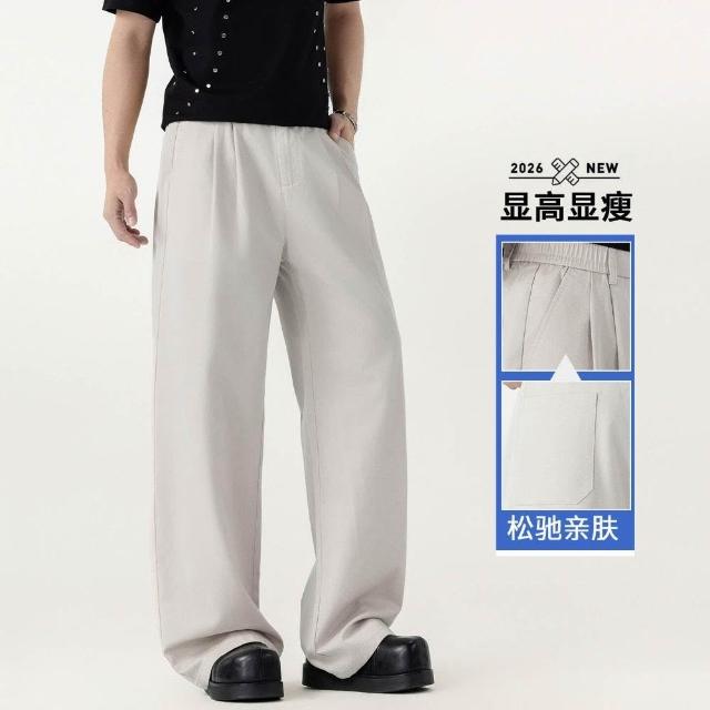 涼感休閒褲牛仔褲男女同款冰絲涼感直筒垂墜抗皺夏季通勤顯瘦長褲日系棉褲寬松男士休閑褲直筒長褲薄款涼感親膚- 高彈親膚免燙大尺碼涼感輕薄透氣不粘身寬鬆直筒褲工作褲寬褲