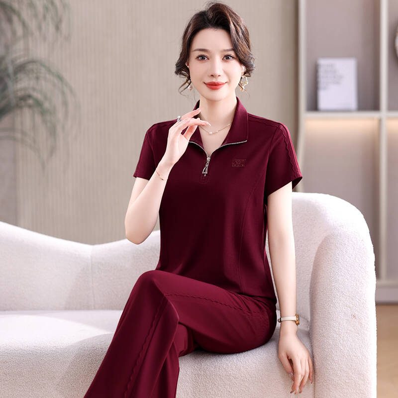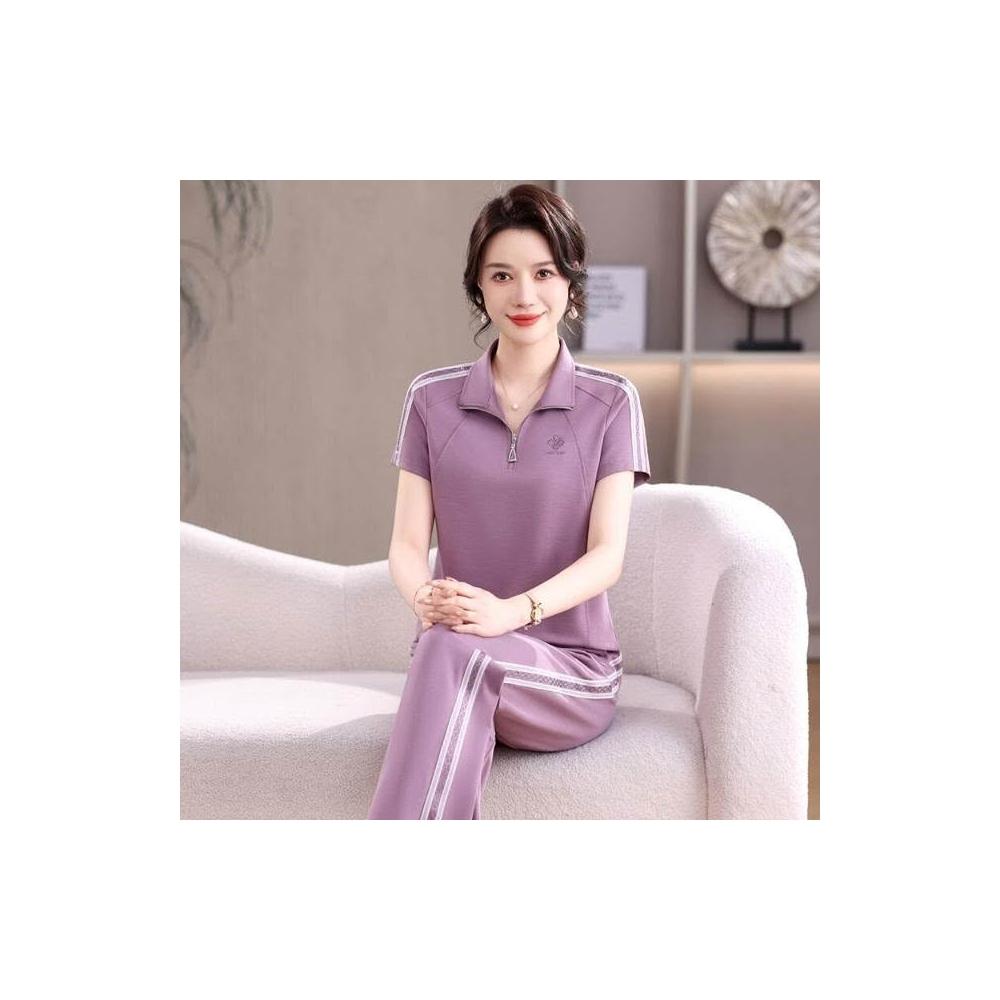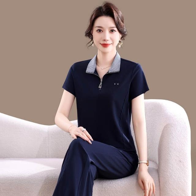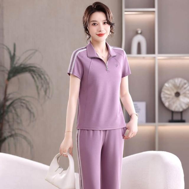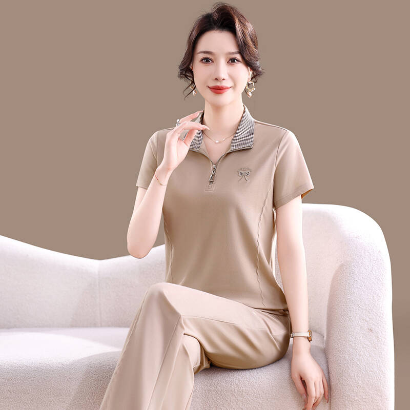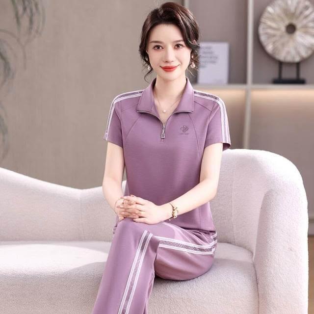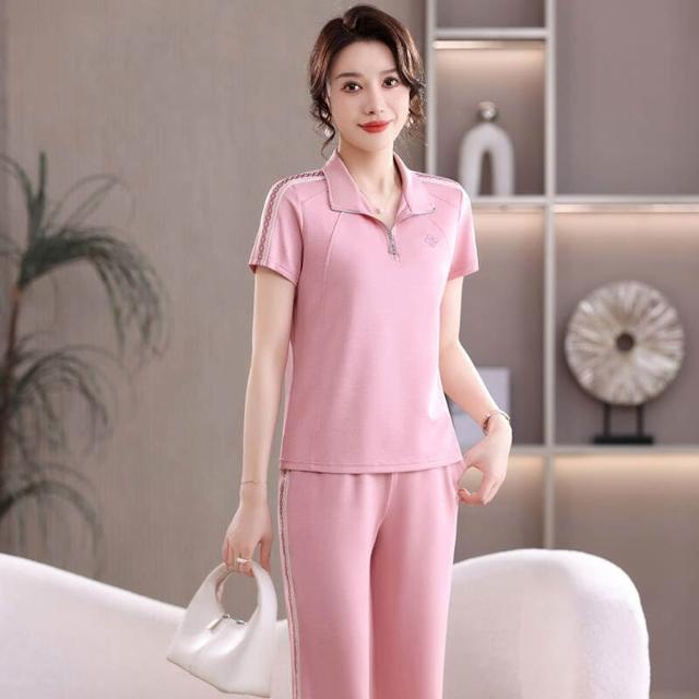 涼感衣冰絲衣套裝運動套裝女冰絲涼感速乾短袖長褲兩件式夏季顯瘦休閒套裝銹標冰絲半拉鏈Polo短袖套裝天絲羅馬時尚潮流跑步運動服兩件套高爾夫球衫透氣不粘身寬鬆束腳吸濕排汗速乾大尺碼