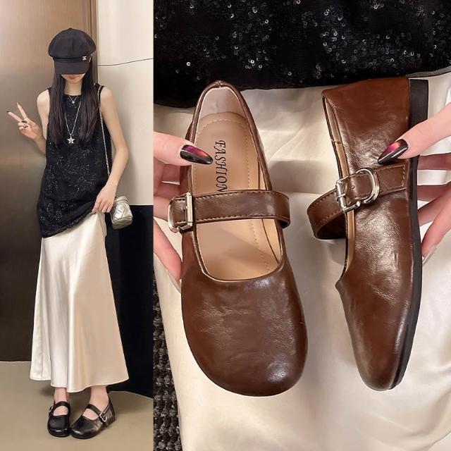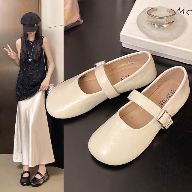 瑪麗珍鞋女一字帶平底軟底透氣韓版溫柔風日常通勤百搭單鞋豆豆鞋皮面時尚休閑鞋平底軟底涼鞋涼拖鞋娃娃鞋懶人鞋平底鞋休閒鞋