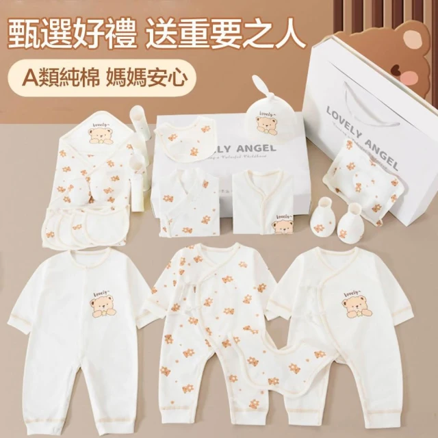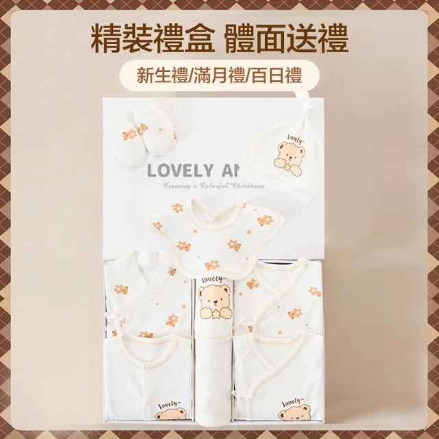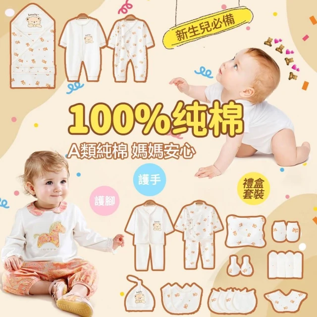 LEMU 樂牧嬰兒禮盒 纯棉材質24-27件套 新生兒禮盒 彌月禮盒 嬰兒衣服 寶寶禮盒(蝴蝶衣/帽襪/圍兜/防抓手套)