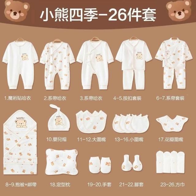 LEMU 樂牧嬰兒禮盒 纯棉材質24-27件套 新生兒禮盒 彌月禮盒 嬰兒衣服 寶寶禮盒(蝴蝶衣/帽襪/圍兜/防抓手套)