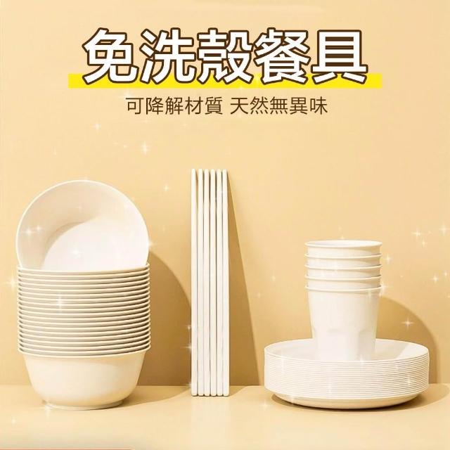 LEMU 樂牧一次性免洗餐具/環保餐具 10個/組 稻殼材質 碗 杯 勺 筷子 盤子 聚餐節假家用碗具 露營野炊燒烤餐具套裝