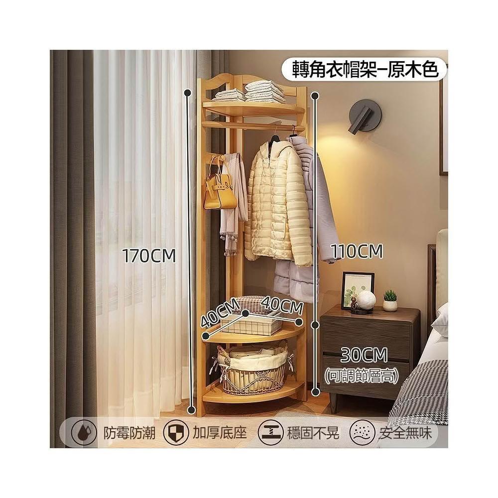 LEMU 樂牧楠竹轉角衣帽架 三角拐角墻角多功能角落臥室落地掛衣架 床邊簡易掛衣服架子 北歐風木質衣架 小戶型置物架