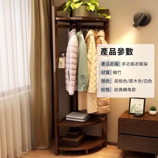 LEMU 樂牧楠竹轉角衣帽架 三角拐角墻角多功能角落臥室落地掛衣架 床邊簡易掛衣服架子 北歐風木質衣架 小戶型置物架