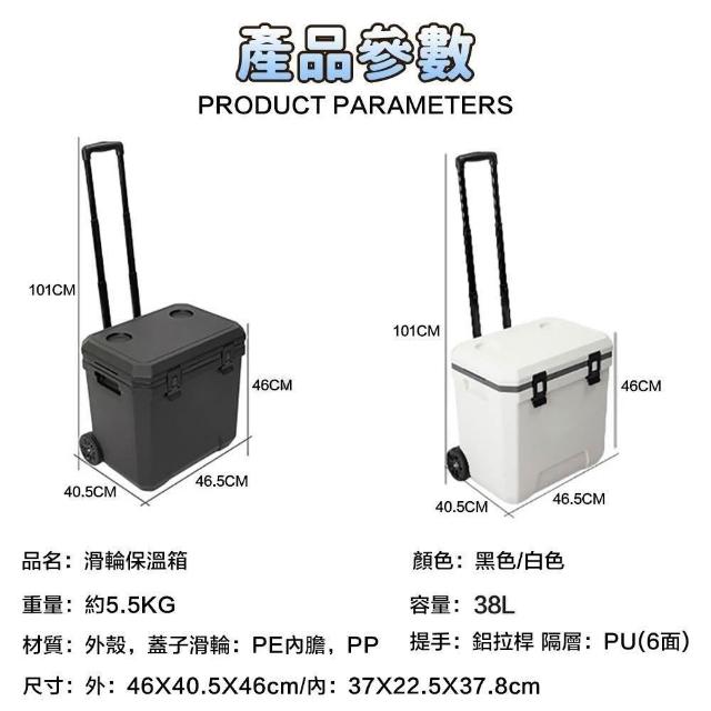 LEMU 樂牧拉桿式38L保冰桶-附冰磚-2色可選(冰桶/保溫箱/保冷箱/保冰箱/保溫桶)
