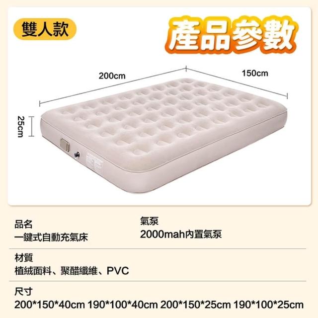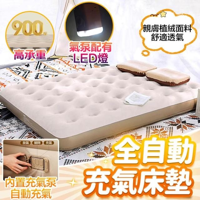 LEMU 樂牧自動充氣床墊 植絨材質 附充氣泵 單/雙人床墊 (充氣床/帶枕床墊/戶外/露營/野餐)