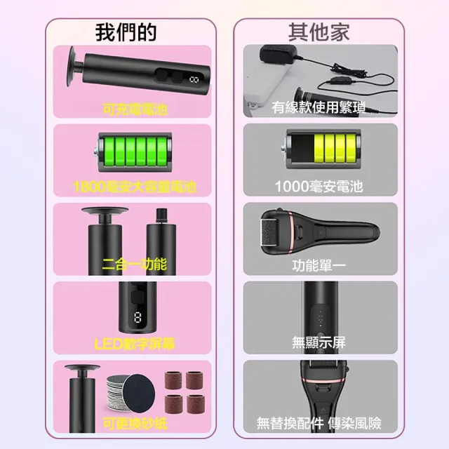 LEMU 樂牧智能数顯無線磨腳器/充電式磨腳皮機/去硬皮機/電動磨腳器/二合一修腳器(可去角質 老繭 修足 死皮)