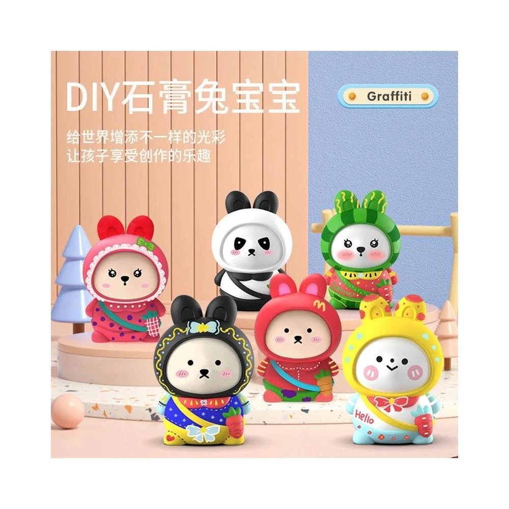 兒童手工Diy石膏兔寶寶白胚彩繪塗鴉上色小兔子擺件網紅石膏娃娃