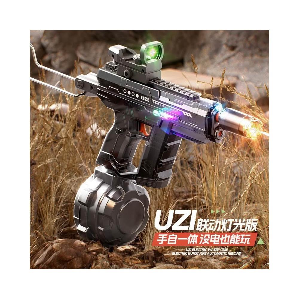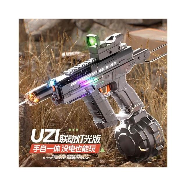 爆閃火光uzi手自一體電動水槍自動吸水搶烏茲聯動連發燈光呲水槍