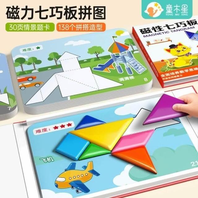 兒童磁力七巧板小學生一年級3-6玩具早教幼兒園禮物智力拼圖創意