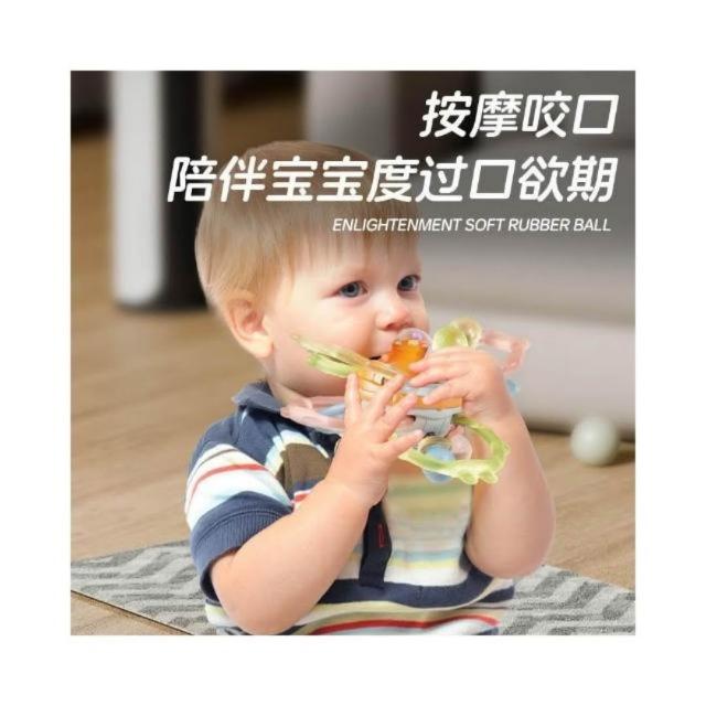 曼哈頓嬰兒手抓球寶寶早教抓握訓練可啃咬牙膠搖鈴3-6月安撫玩具