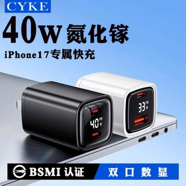 CYKE手機充電頭氮化鎵K15適用蘋果17充電器快充頭USB多口數位BSMI