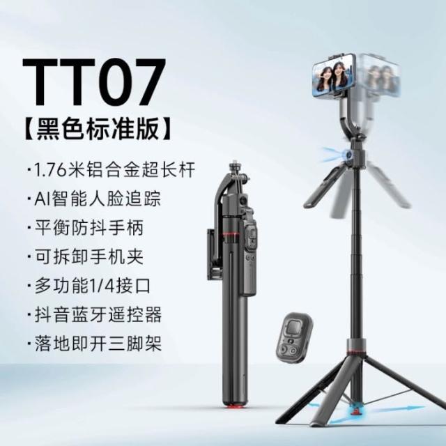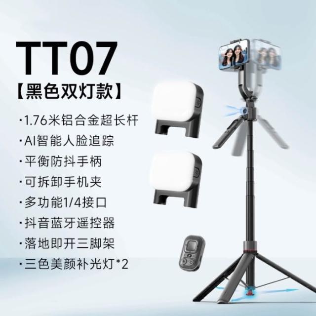 TT07防手抖自拍棒智慧AI雲台人臉跟拍伸縮腳架丟丟桿直播手機支架
