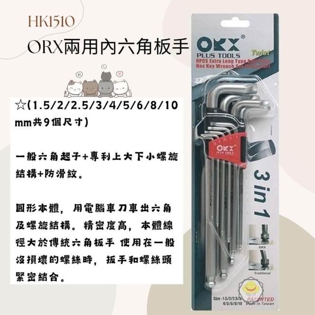 ORX 六角板手 內六角板手 六角扳手 內六角扳手 滑牙 六角板手組 六角扳手組 L型板 HK1510