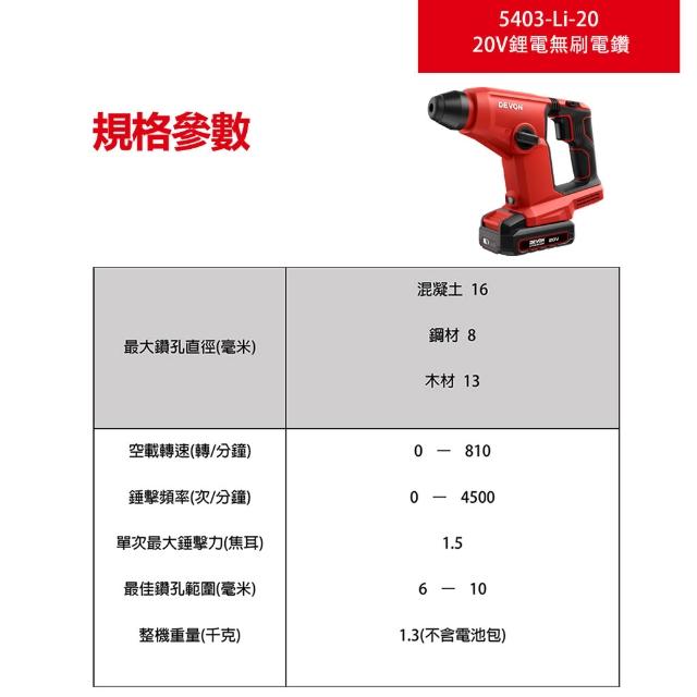 DEVON大有5403-Li-20 20V充電無碳刷鎚鑽/電鑽