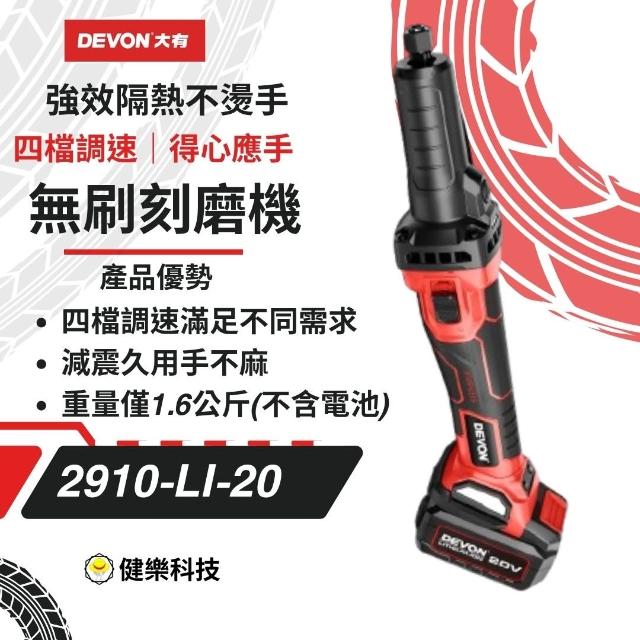DEVON大有20V充電式熱風槍 雙鋰電 2910 -Li-20鋰電無刷 刻磨機