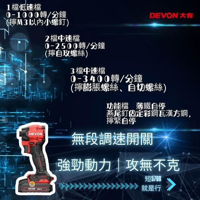 DEVON大有 5768-Li-20 20V 鋰電無刷衝擊起子機 【買整組送工具箱】