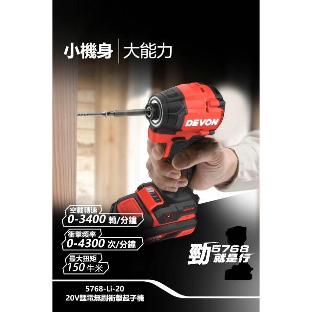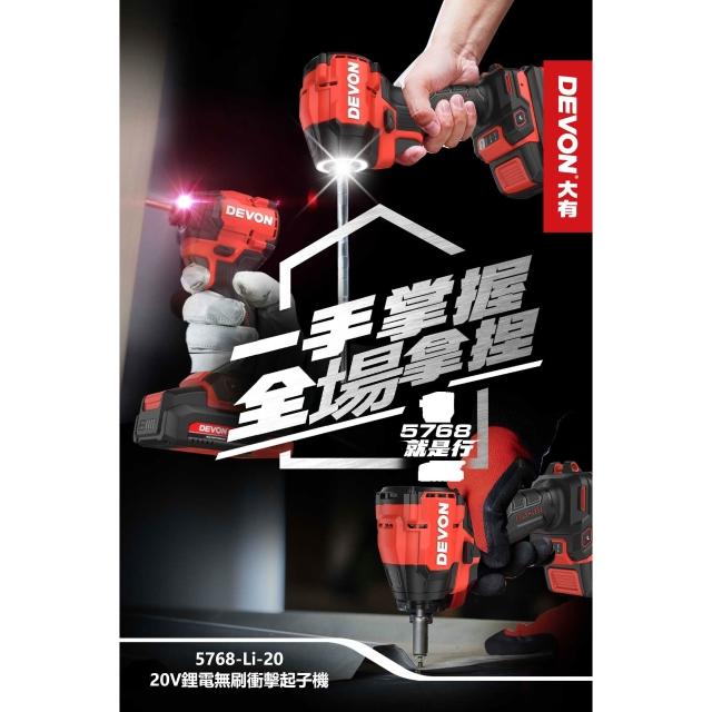 DEVON大有 5768-Li-20 20V 鋰電無刷衝擊起子機 【買整組送工具箱】