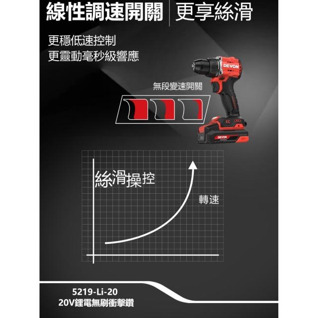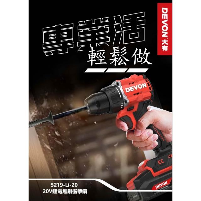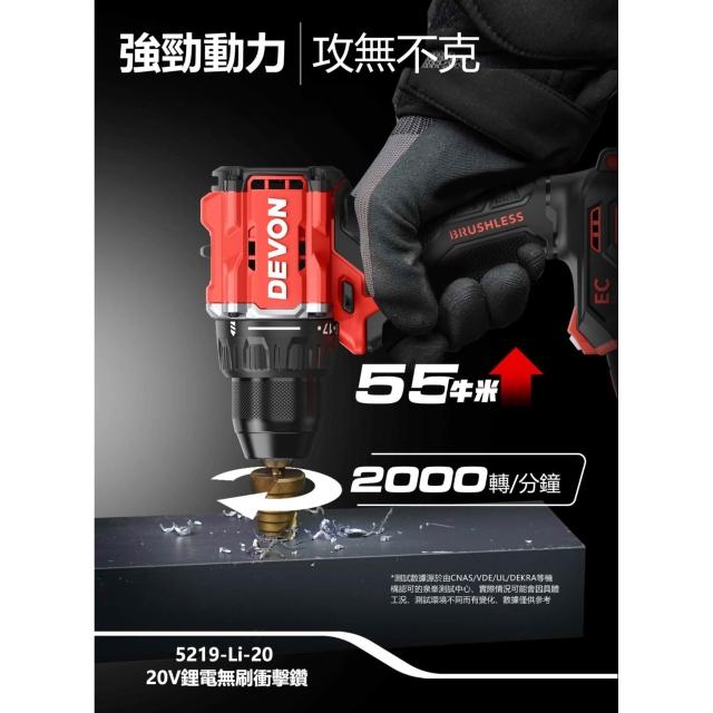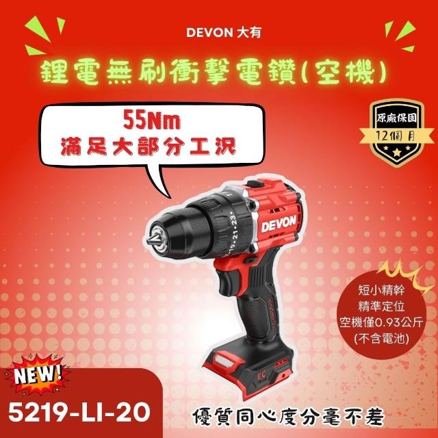 DEVON 大有大有 DEVON 5219 鋰電無刷震動電鑽(30/55Nm) 起子電鑽 手電鑽 空機