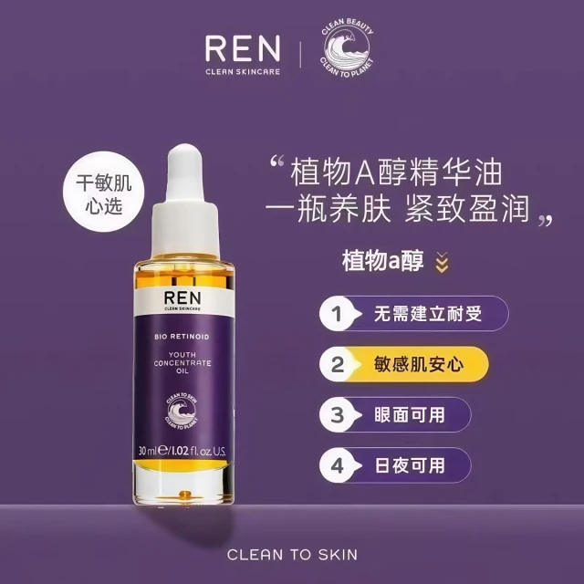 英國 ren 精華油30ml 植物A醇精華 緊致淡紋 護膚油 臉部精華 保養油 油精