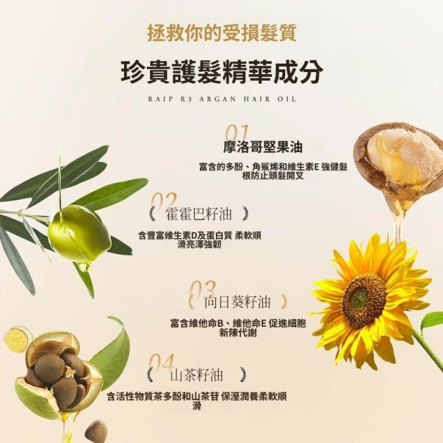RAIP護發精油 摩洛哥堅果發油R3 100ml 蓬松柔順 絲滑 修護受損燙染幹枯 保濕 護發潤發 精油