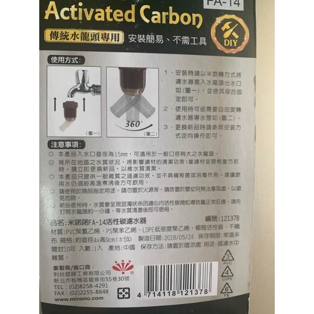 水龍頭濾水器 360度旋轉水龍頭 活性碳 過濾雜質 傳統水龍頭專用 簡易DIY 米諾諾FA-14