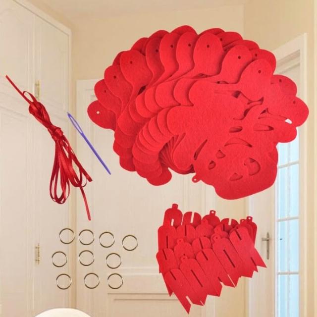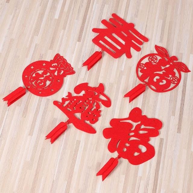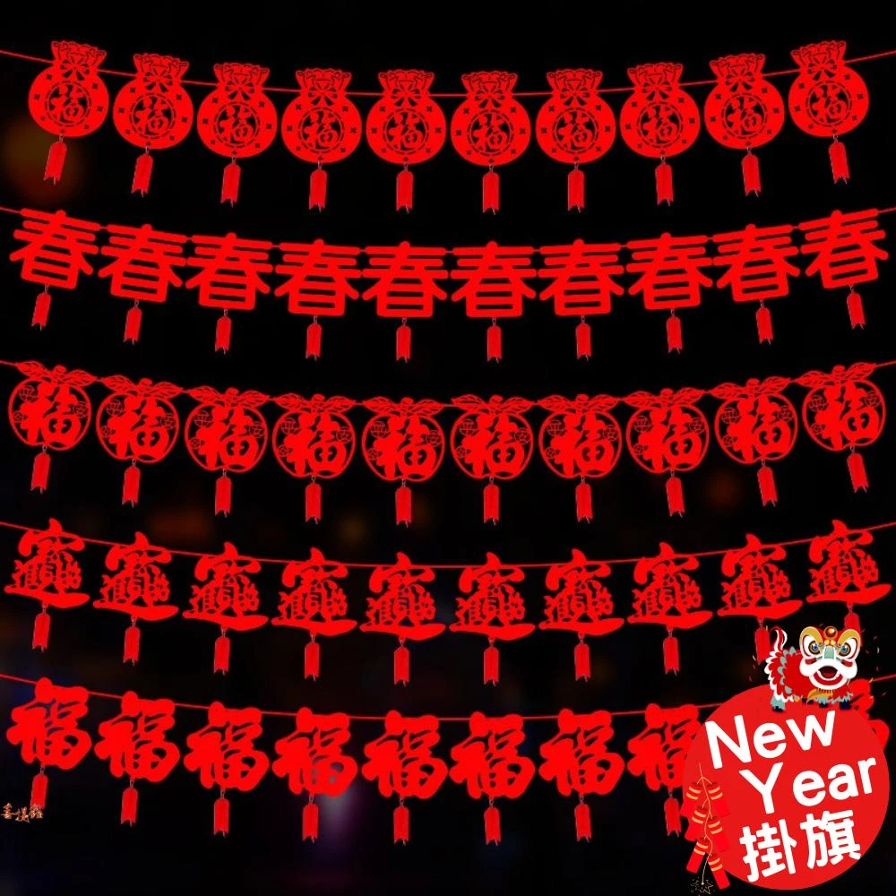 新年掛旗 裝飾 拉花彩旗 派對旗 旗幟吊旗 派對活動 佈置 吊飾掛飾 春節 新春 不織布 毛球 DIY