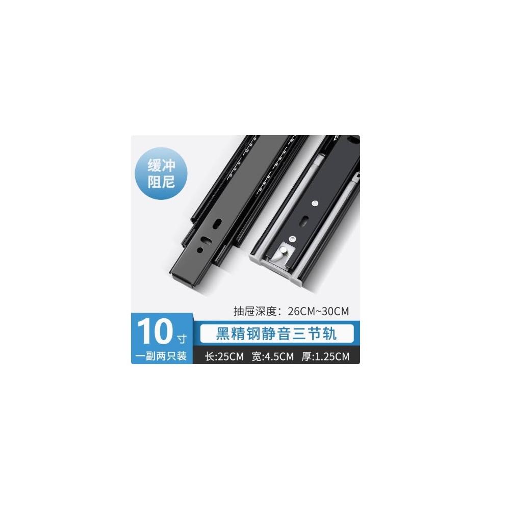 加厚抽屜軌道三節軌櫥櫃滑軌不銹鋼25cm黑鋼靜音阻尼三節軌