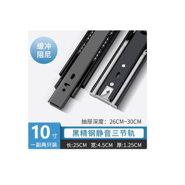 加厚抽屜軌道三節軌櫥櫃滑軌不銹鋼25cm黑鋼靜音阻尼三節軌