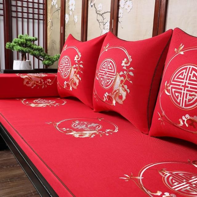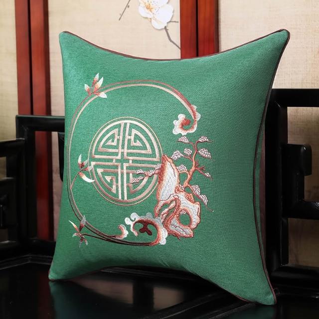 新中式抱枕靠墊中國風紅木沙發客廳抱枕套棉麻刺繡高檔靠背可定製