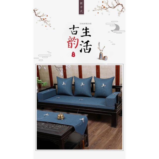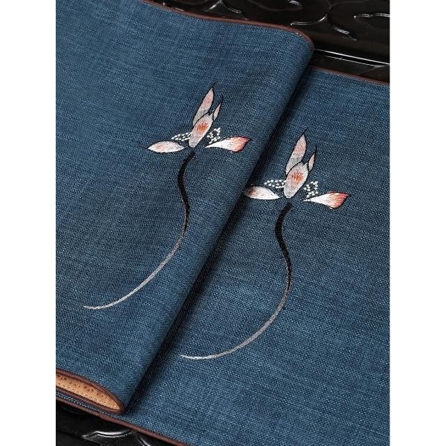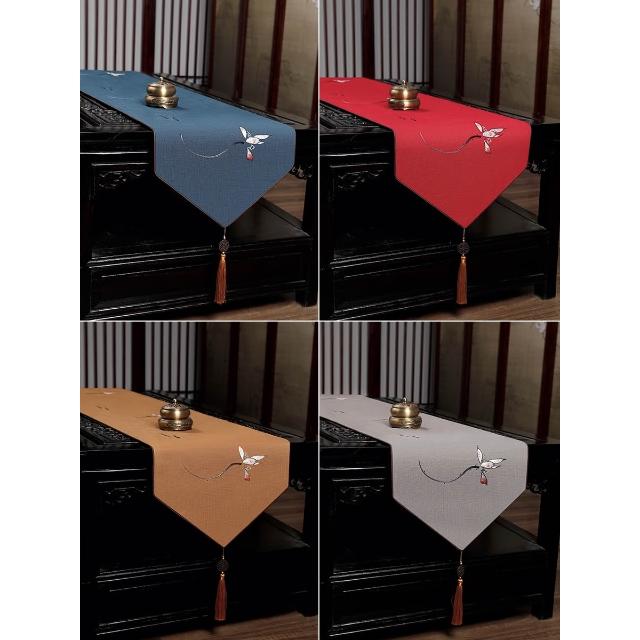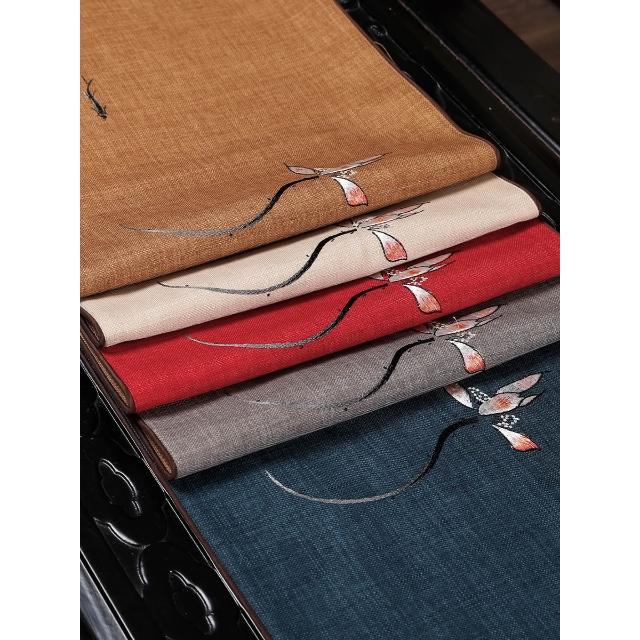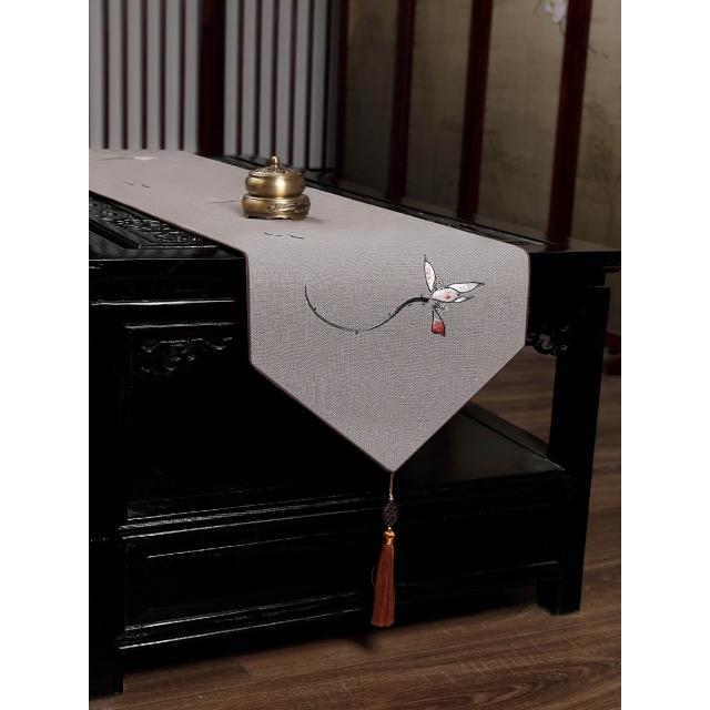 - 棉麻刺繡桌旗新中式禪意茶幾桌布